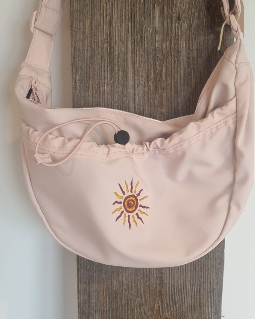 Extendable strap, toggle front pocket, pockets inside and two-way zipper.